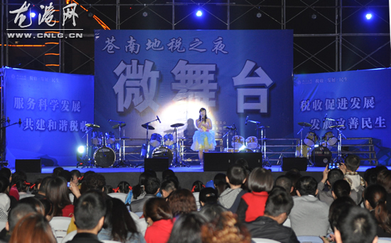 龙港网4月28日讯:每年的4月份是全国税收宣传月,昨天晚上,一场“苍南地税之夜——微舞台”活动在龙港金河广场上演,吸引不少群众到场围观。