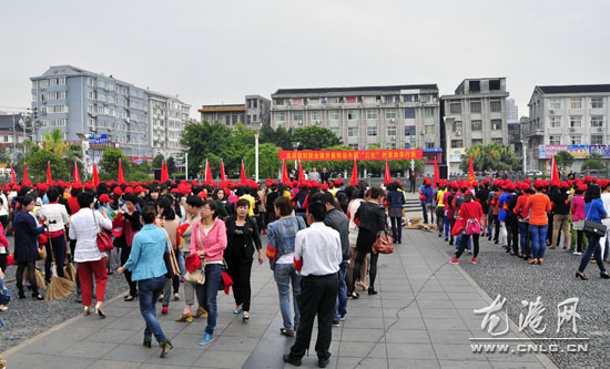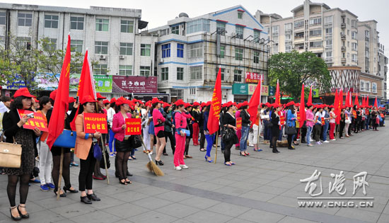 龙港网4月28日讯:为响应县妇联的“幸福苍南”巾帼护美活动号召,进一步推进龙港“四边三化”城乡环境整治活动。今天上午,龙港镇妇联全面开展“舞动巾帼三化护美劝导”行动仪式。苍南县妇联主席陈军苹、龙港镇委委员朱文胜、镇妇联主席陈美花,以及相关社区、村居、部门单位等妇女干部,巾帼三化护美劝导成员一同参加。