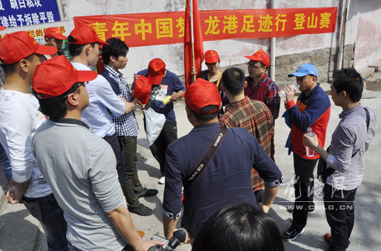 昨天上午9点,团员们在云岩社区鲸头村一起听取了规则讲解。据了解,此次登山比赛不单单体现参赛者的体力素质,还结合我镇四边三化环境整治行动,要求每位参赛者必须捡取沿途的垃圾。参加比赛的20多位选手都领取到了一个垃圾袋。