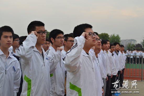 龙港兴港高级中学成人礼在国歌声中拉开帷幕。面向国旗,537名即将步入成人阶段的学生们进行了集体宣誓。
