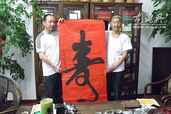 龙港网5月12日简讯:5月10日,著名书法高龄[87岁]大师韩维靖先生应邀来龙港泼墨挥毫,引得在场观众热烈欢迎和阵阵掌声。