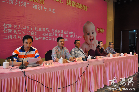 龙港网5月14日讯:为了动员全社会关心、支持和参与计划生育工作,进一步倡导和营造男女平等、家庭和美、生育文明的社会新风尚,为建设“三生融合 幸福苍南”创造良好的人口环境。昨天下午,龙港镇举办了苍南县“树婚育新风 建幸福家庭”宣传活动仪式暨三优妈妈知识大讲坛。参加讲坛的县镇领导有苍南县副县长林小同、龙港镇副镇长缪维宝等。