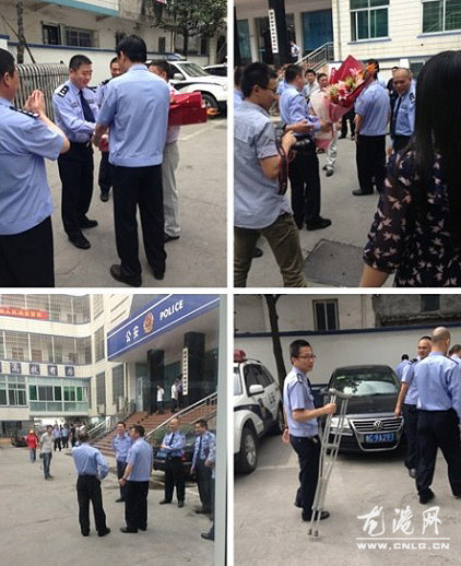 龙港网5月14日讯:在苍南“3.23”绑架案战斗中英勇负伤的龙港公安分局局长杨成革出院归队了(杨成革事迹详见本网3月23日曾报道),今天上午,龙港公安分局为他举行了简短的欢迎仪式。