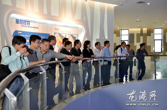 考察组首先来到龙港新城,参观了新城规划展示馆,并观看了新城规划宣传片。龙港新城负责人就新城空间布局、功能定位、产业集聚、道路交通等方面情况做了详细介绍。