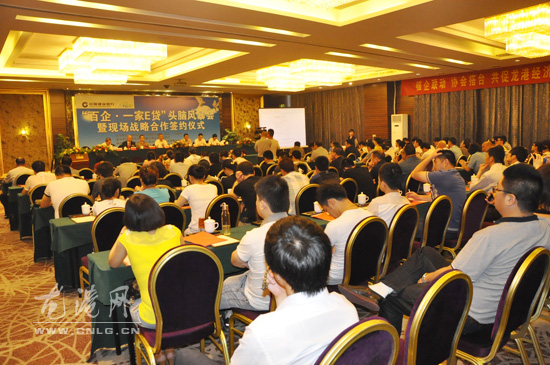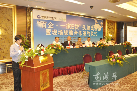 龙港网5月22日讯:近日,“百企·一家E贷”头脑风暴会暨现场战略合作签约仪式隆重举行,来自银行、龙港工商分局、个民协、龙港消费者协会、房地产商、装饰设计师、材料供应商代表等出席活动。