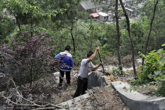 龙港网5月22日讯: 为了有效遏制“青山白化”现象的回潮,还大自然一片青山绿水,今天上午,龙港社会事务管理局联合云岩社区继续组织力量对联友、梁峰、鲸头存在的一些违规建筑公墓、私坟进行了强力拆除。截止今日,我镇今年已拆除非法翻建、新建公墓约200余座。