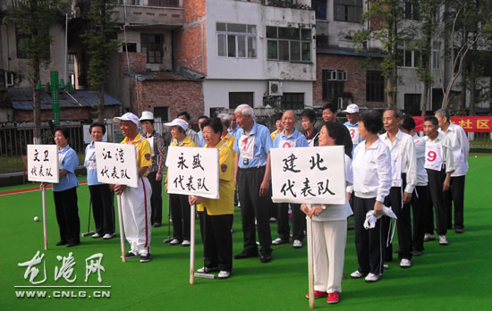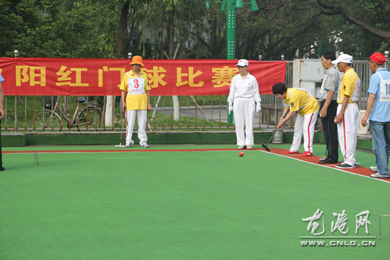 龙港网5月23日讯:为了增强社区居民对新社区的满意率和认同感,促进社区融合,今天早上,城北社区在江滨公园举办了2013年度夕阳红门球比赛。社区书记主任出席开幕式。