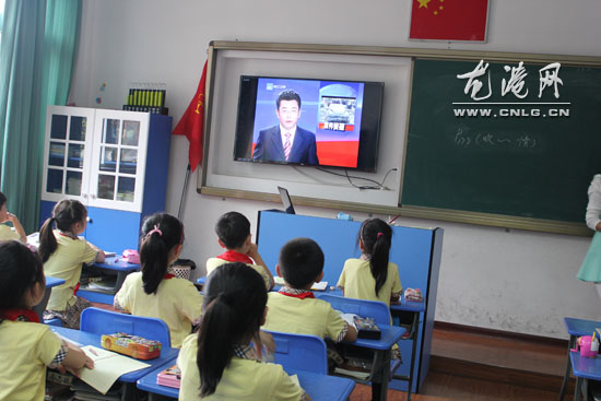 龙港网5月29日讯:“这个周末在家你看到了什么新闻?”“我们苍南人易会满出任中国工商银行行长,真了不起,我要向他学习”、“我在新闻里看到这个周末宜山镇有许多小学生上街宣传环保”、“新闻里说李克强总理正在外国访问”……周一一大早,刚刚返校的三(A)班的几位同学刚进到教室里,就迫不及待地唠起了周末电视里播的新闻,你一言,我一句,边上应声过来的小听众一下子就围成了圈。