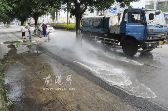 龙港网5月30日讯:昨天下午,一辆环境养护车准备从龙金大道曙光印业前面的消防栓取水时,由于消防栓爆裂导致大量自来水喷涌而出,直致整条路面积水,幸好此处人流不大,没有照成太大影响。
