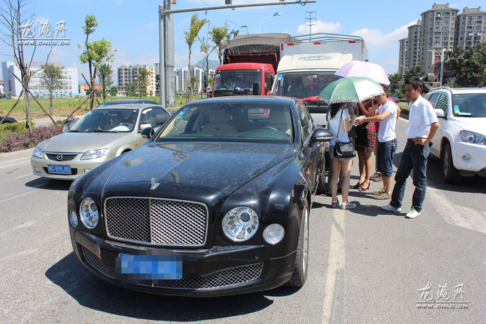龙金大道东新街路口发生一起货车追尾宾利事件