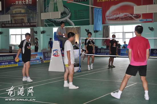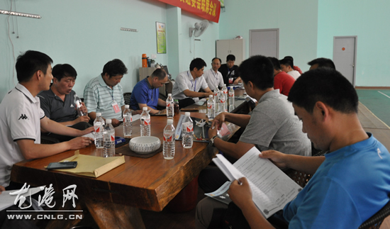 龙港网6月25日讯:为全面做好2013年中国藤球精英挑战赛的前期筹备工作,今天下午,藤球精英挑战赛组委会在兴华羽毛球会所召开联席会议。国家体育总局小球运动管理中心三部副部长黄凯,龙港镇副镇长陈贤选及来自全国各代表队领队、教练员参加了本次会议。