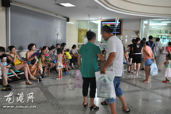 昨日,记者在龙港医院的输液区里看到,整个输液区内挤满了人,排着长队等候输液。其中,输液人群中大部分以小孩子居多。据了解,由于最近的持续高温,有些人贪凉,长时间呆在空调房里,或者用冷水冲澡等等,小孩抵抗力较弱,易得“热感冒”。