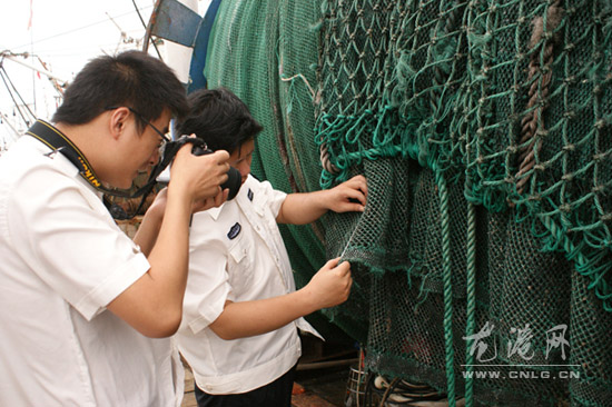 会后,东海区渔政局专门派出渔政执法人员到龙港镇舥艚港,登船进行网具网目尺寸检查。