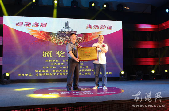 晚会还给金田•中环第四届龙港电视歌手大赛给予大力支持的多家企业公司颁发了特别协办荣誉奖。