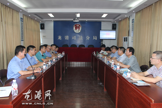 县司法局陈健局长、政治处主任李平对龙港司法分局成立的政策依据以及成立过程作了详细的介绍,瞿建成局长一行人认真听取了介绍并要求随行工作人员将这些宝贵的经验运用在萧山区司法局成立分局的工作实际中。与会人员还就普法宣传、社区矫正、人民调解、法律援助、安置帮教的工作方式方法作了深入的交流。