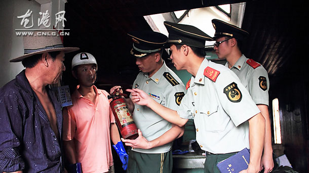 龙港网9月11日讯:在东海休渔期即将结束之际,今天,舥艚边防派出所民警深入码头,对停靠渔船进行一次全面细致的消防安全检查与消防知识宣传。针对检查出的问题,边防民警耐心讲解危害性,并帮助落实整改措施。(周元斌/摄)