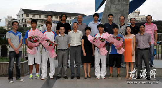 龙港网9月22日讯:近日,我县副县长陈国苗一行来到龙港五小,为在2013年全运会U18代表浙江男足表现优异的四位足球小将送上慰问,镇领导戴安湖及县体育局负责人陪同慰问。