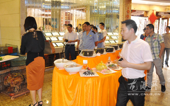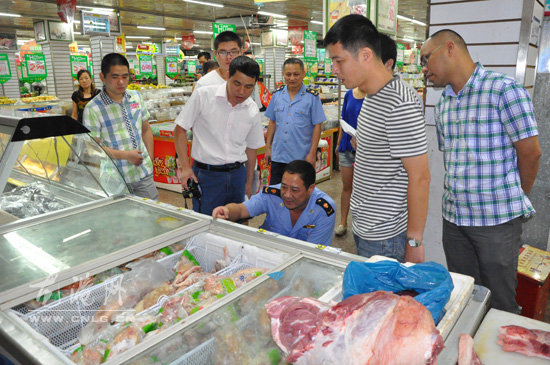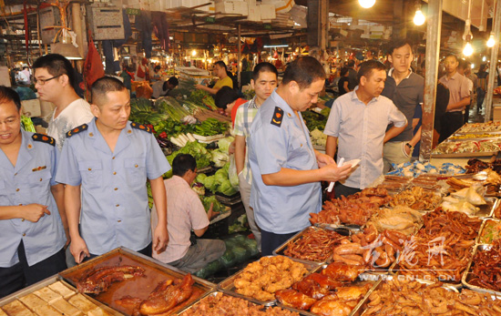 龙港网10月1日讯:昨天上午,龙港镇商贸办、工商、质监、食品药品监督等部门执法人员,对菜市场、超市、食品批发部、酒店等场所的食品安全情况进行了检查,确保龙港镇十一节假日期间的食品消费安全。