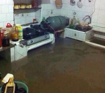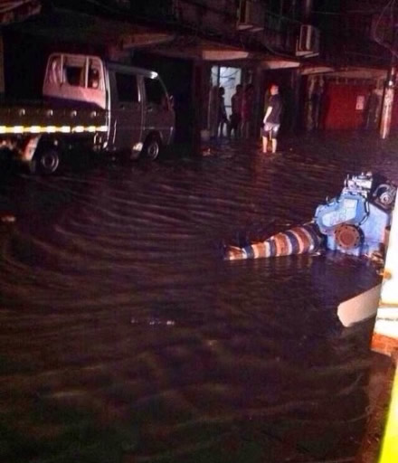 龙港网10月6日快讯:随着强台风“菲特”脚步靠近龙港沿海地带,风开始大起来,雨也开始大起来,潮位也不断上涨,“风、暴、潮”三碰头使得舥艚渔港出现海水倒灌,导致靠近渔港的街道开始满水,而附近居民家中满水已有半米多高。