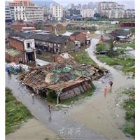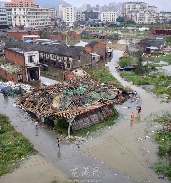 龙港网10月8日简讯:由于强热带风暴台风“菲特”的影响,位于龙港海港路900号后面一片狼藉,部分房屋出现倾斜,看起来十分危险,低洼处仍积水严重,无法排除。