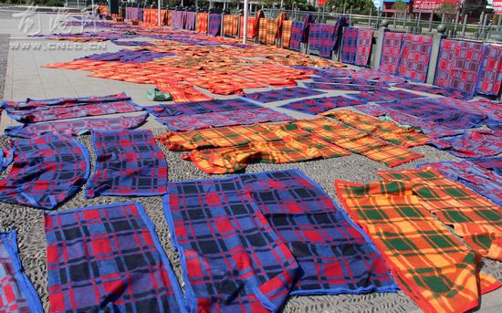 龙港网10月11日讯:台风过去也有几天时间了,上午,记者走访了龙港镇几条街道和广场,看到不少居民纷纷拿出自家不同受潮物品在太阳底下暴晒,包括:布角料、尼龙袋、海产品等。一些居民说:“台风过后的这几天都还没顾得上歇息,每天忙着晒这些被浸泡的毯子。还好这几天天气良好,不然这些东西发霉发臭只能当做废品解决了。”