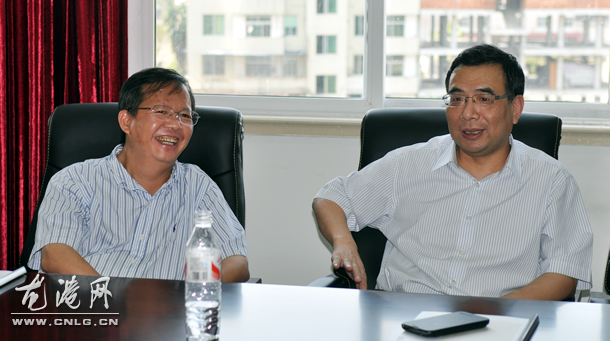 苍南县副县长林小同(中) 龙港镇副镇长陈贤选(右)