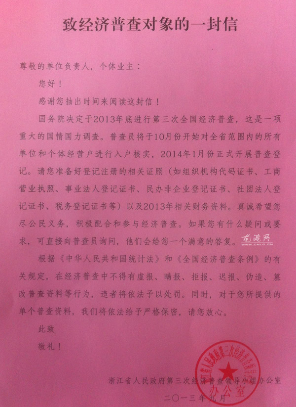 致经济普查对象的一封信