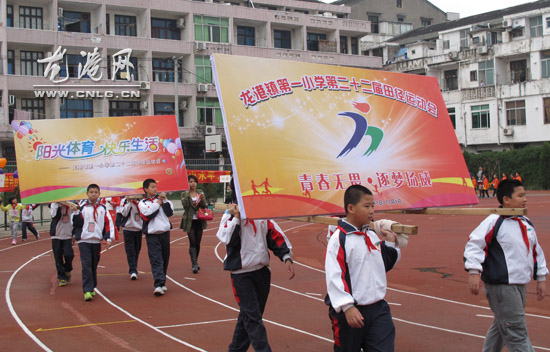 龙港网10月31日简讯:龙港镇第一小学第二十二届田径运动会隆重开幕。来自全校一至六年级的38支代表队参加为期两天的激烈角逐。开幕式上,运动员代表方队逐一亮相,运动员们个个英姿焕发,精神抖擞,展现了龙港一小学生意气奋发、积极向上的精神风貌。