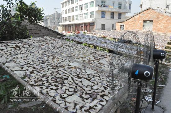 在现场,好些鱼干、鳗鲞、乌贼鲞等都已经晒的差不多了,晾着的鱼干还散发出淡淡的鲜味,闻了叫人流口水。有着多年晒鱼经验的吴老伯告诉记者,做好的鱼干要把鲜鱼处理好洗干净后,最好在海水里浸一遍,这样既可以不易招苍蝇,而且味道鲜美。
