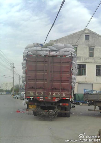 最近几天上午,都会有装满碎布条的货车在龙港镇海城社区海头村的龙舥公路旁卸货。高出车厢的货物每次都会顶到公路旁边的通讯电线,甚至有时还会有人用手扶住电线。通讯电线外圈虽然有绝缘层的保护,可一但出现破损后果不堪设想,值得警惕。