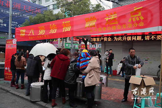 龙港网1月8日简讯:(陈峰)今天是腊八节,从6点半开始,太平慈善功德会龙港分会一行分别在龙跃路、龙港医院、小龙人幼儿园门口、下垟郑福胜寺、白河路和站前路口等5个地段免费派送腊八粥。