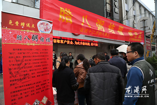 据太平慈善功德会龙港分会副会长李信说,从昨天就准备了食材大米、红枣、绿豆、红豆、花生、桂圆等480斤,下午又分2点地方熬腊八粥。今日将为6千人免费提供腊八粥,施粥将从早上6时30分一直送完为止。