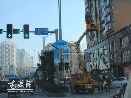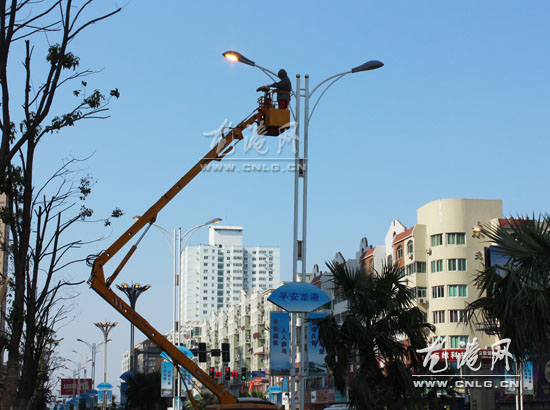 龙港路灯检修“换衣”迎新年