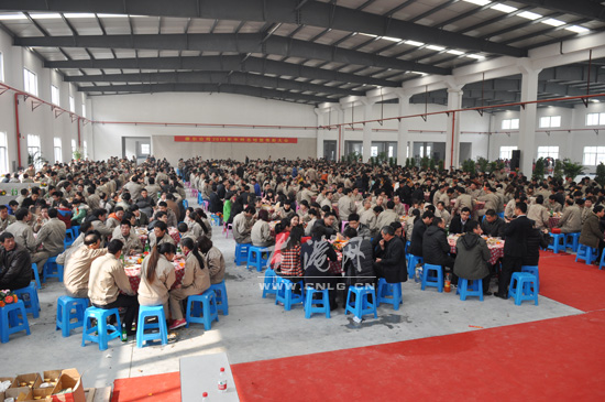 据了解,康尔公司现有职工800多人,绝大部分是新居民职工。2013年比2012年中国电磁炉行业市场需求同比下降10%,然而2013年企业微晶玻璃面板市场占有率同比增长17%,企业员工有着强烈的荣誉感。临近岁末,有的新居民职工开始回家过年,公司准备了丰盛的年夜饭,让回家过年和留守企业的员工提前吃顿年夜饭。