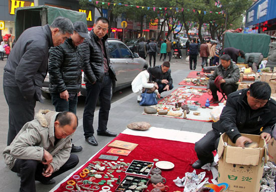 龙港网2月11日讯:日前,龙港镇建新路龙跃路附近桥头摆起了几个古董摊子,许多古董爱好者纷纷前来“淘宝”。据了解,地摊古董一般人很难看出成色,分出好坏,辨别真假及年代,买家一定要檫亮眼睛,挑选到物有所值的古董,同时小心上当受骗。