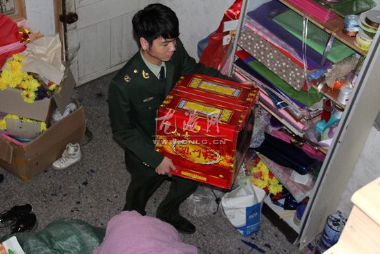 龙港网3月6日讯:今天上午,龙港镇组织安监、公安、消防等部门联合行动,对镇前路一带的沿街商铺进行突击检查,成功端掉三个无销售证的私售点,查获部分烟花爆竹,私售点的负责人被带往派出所调查。