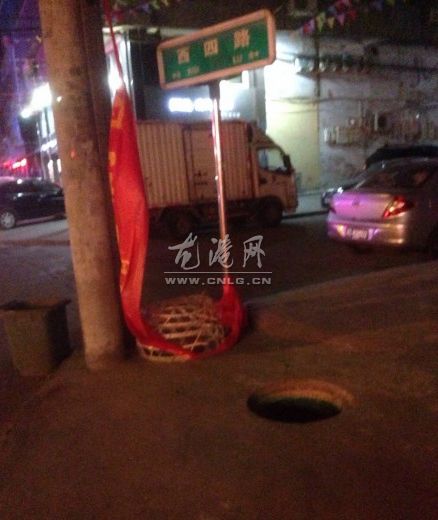龙港网3月7日讯:据网民反映:龙港镇西四街西垟路路口井盖失踪多日,十字路口人多车多,加上这几日又是雨天,视线不清甚是危险啊!望有关部门尽快赶赴现场处理。