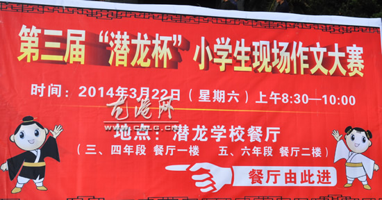 龙港网3月22日讯:今天上午,由龙港镇文联、龙港学区主办的第三届“潜龙杯”小学生现场作文大赛在龙港潜龙学校举行。来着全镇各个小学近千名小学生学生参加了此次比赛。