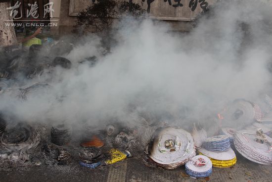 记者在现场看到,该公司门口的地面上有一堆的不干胶、塑料等东西正在燃烧,释放出难闻的气味和浓烟,而旁边的大树更是遭殃,原本翠绿的树叶被熏成了焦黄色。过往行人被呛得咳嗽不止,来往的车辆被烟雾阻挡了视线。一位从路边经过的行人对此表达了不满:“怎么能在大街上随便烧垃圾呢?乌烟瘴气的,多难闻啊!”附近居民也告诉记者,有时烧垃圾多的时候,火苗蹿得很高,他们担心会烧到空中的高压线。据了解,目前相关部门已介入调查。