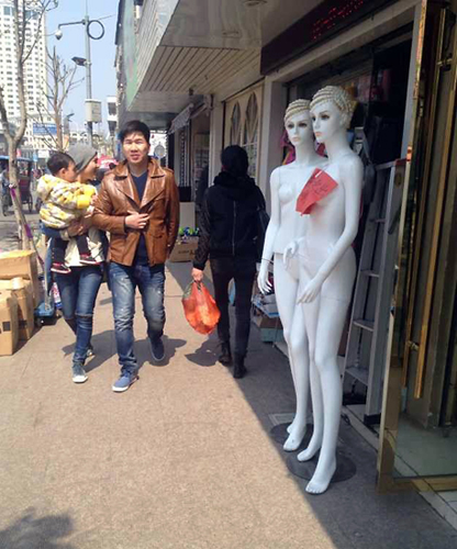 近日,笔者路过龙港人民路东站前看到,有一家服装店把三个“一丝不挂”的仿真服装模特摆放在门口,吸引了过往路人和行车司机的眼球,构成一幅与文明城市创建很不和谐的画面。笔者呼吁业主要增强文明经营意识,杜绝有碍观瞻、有伤大雅的不文明行为。相关部门也应规范管理,还市民一个健康有序、整治文明的生活环境。