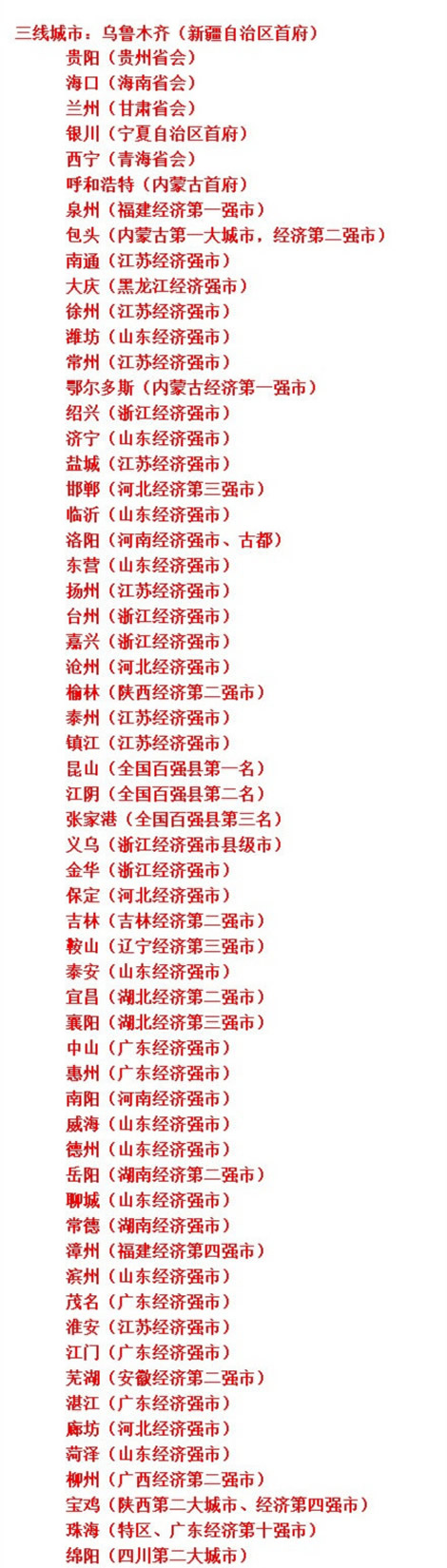 根据这份榜单显示,一线发达城市共有5个,分别是北京、上海、天津、深圳、广州北,而厦门、重庆、南京等城市则被划分到二线发达城市中。