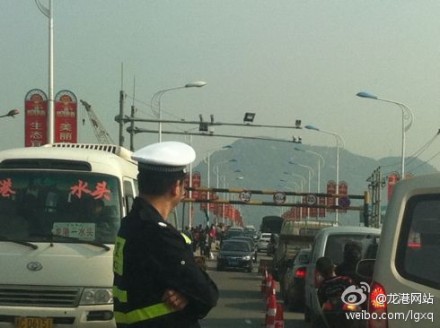 龙港网前方记者陈记在龙港大桥现场,9点26分,龙港大桥龙港段受阻严重,龙港交警队3名交通协警正在现场指挥,大部分车辆有序排队通过。 104国道线敖江至岱头段全线受阻严重,岱头交警中队全体交协警在一线指挥疏导交通。