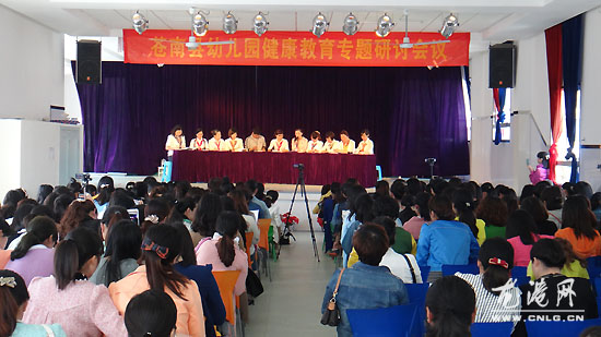 龙港网4月17日讯:幼儿是祖国的未来,健康的体魄是发展之根本。为了深入贯彻《幼儿园教育指导纲要》精神,将男、女教师的优势进行有效的整合,推进苍南县幼儿园健康“学本课堂”建设。由苍南县教育局教研室主办的苍南县幼儿园健康“学本课堂”建设活动于2014年4月15日龙港东城幼儿园举行,全县一级及以上业务园长或骨干教师等近200名人参与了研讨会。