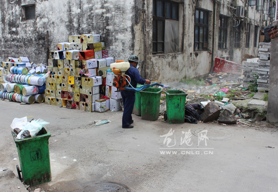 龙港网4月18日简讯:为有效减少春、夏季疾病的流行,营造健康的生活环境,龙港镇政府组织爱卫办,对龙港镇城区内,以老旧居住区、背街小巷农贸集市、镇村结合部为重点, 在苍蝇、蚊子、蟑螂、老鼠容易出没集聚的墙角、水沟边、垃圾房以及下水道等地进行了喷洒药物,除四害的处理。