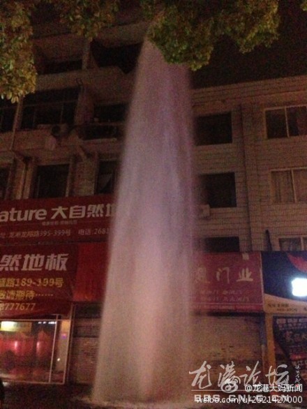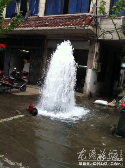 而就在昨天,@华玲820也在龙港论坛爆料龙湖路段一处消防栓也同样“受伤”, 一个红色的消防栓歪倒在路边,水柱喷起几米高,在水压的作用下,消防栓成一个“喷泉”,路上也已积有很多水,已影响路上行人车辆的出入。