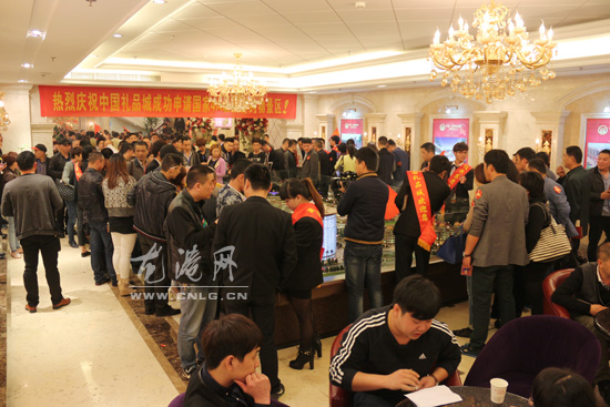 龙港网4月25日讯:昨天下午,中国礼品城奥特莱斯广场商铺开始招商、销售,现场人潮涌动,十分热闹。