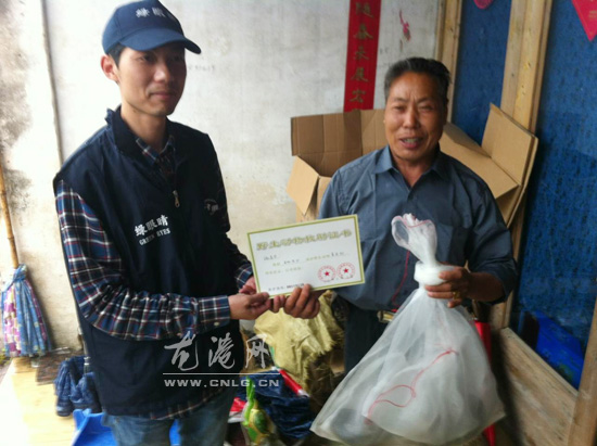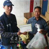 龙港网5月16日讯:日前,龙港镇下涝村热心的施老伯捉到了一条3斤半重的菜花蛇,中午,绿眼睛环保组织的志愿者上门将这条菜花蛇放入救助箱中送去放生。