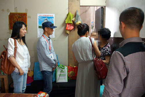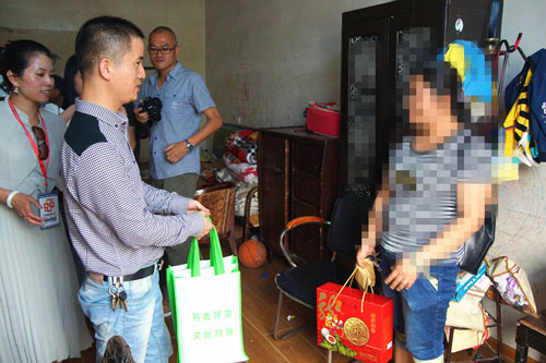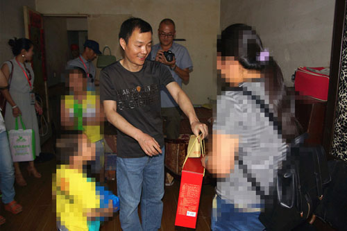 为了让孩子们过一个欢乐、祥和的节日,2014年05月28日下午,龙港镇新居民服务管理局局长王时平、龙港镇图书馆副馆长金振翔、壹次心未成年人帮扶中心义工顶着酷暑拎着大包小包去看望在新居民在服刑人员子女。孩子们看到我们就像久违的亲人一样围着说笑不停,王时平局长给孩子们送上了慰问金和粽子,金振翔副馆长给孩子们带来了三十多本少儿类书籍,爱心妈妈和义工们为三个小朋友准备了四大袋时尚、漂亮的衣服和玩具。孩子们看到漂亮的衣服、心怡的书籍,个个手舞足蹈,围着义工们开心地读起了童话故事。