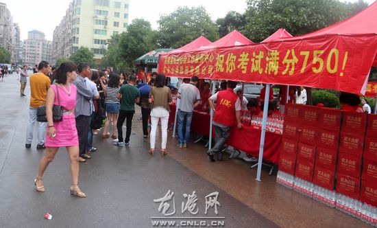 龙港网6月7日讯:今天2014年高考开始了,面对高考期间有些闷热的天气,苍南县弘毅社会工作服务中心和农夫山泉股份有限公司开展了为考生送“满分水”清凉活动。凡在龙港二高考点的考生,在高考期间持准考证就可免费领取一瓶750ml象征着满分750分的天然饮用水,祝愿每位考生都能获得一个最为满意的成绩,此外,弘毅社会工作服务中心还为广大考生和家长提供医药应急服务。