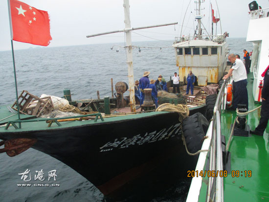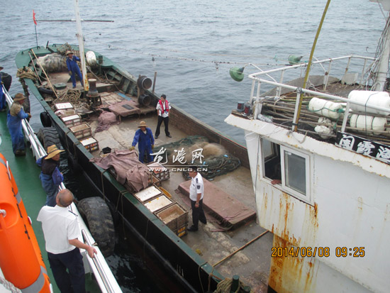 经执法人员登临该船进行检查,该船没有捕捞许可证书及相关证书,船长陈成来,船上共有8人,股东的年龄都不小,分别为:陈成来52岁、陈成秀66岁、林成胖63岁、林成吨65岁、林存长65岁、林成伟61岁、谢作地62岁、刘生鹤73岁,船钢质结构,流刺作业渔船,主机功率184千瓦,船长26米,船宽4.6米。据船长交代,该船于当天凌晨3时从南坪港开出来,共带了100张流刺网出海生产。
